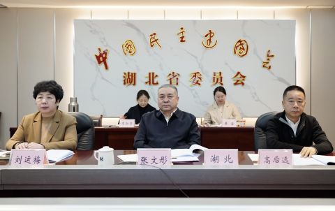 民建湖北省委副主委高后远、刘运梅,民建湖北省委社会服务部全体同志在湖北分会场以视频连线方式参加会议。