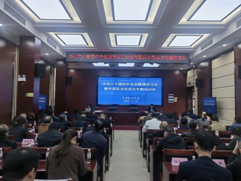 为深入学习贯彻中共二十届四中全会精神,全面落实中共中央关于促进民营经济高质量发展的决策部署,切实将政策红利转化为企业发展动能,11月15日,由民建咸宁市委主办,民建咸安区总支承办的“中共二十届四中全会精神学习会暨民营经济促进法专题培训班”如期进行。民建咸宁市委主委王丹青带领市委委员、各基层组织主委、内部监督委员会委员、企业家协会会员以及2023-2025年新会员共70余人参加活动。