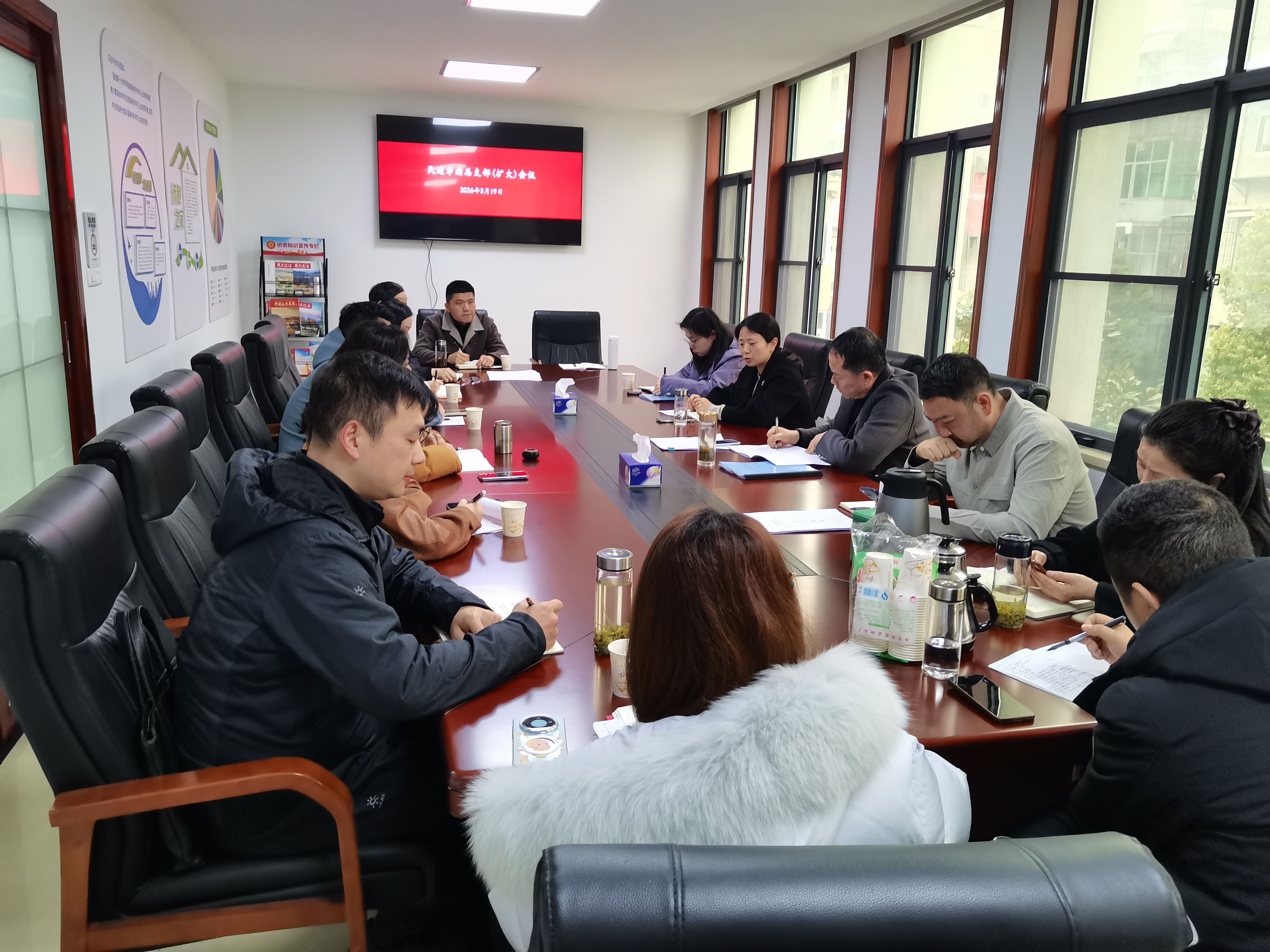 3月19日,民建孝南总支主委黄勤森主持召开扩大会议,总支班子成员及部分骨干会员14人参会,区委统战部副部长钟丹出席会议并讲话。