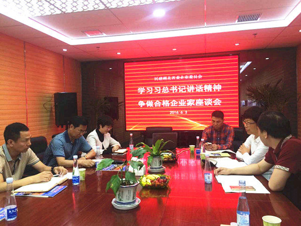 6月3日下午,由民建湖北省委企业委员会主办、会员企业华社联盟承办的“学习习总书记讲话精神,争做合格企业家座谈会”在华社联盟总部会议室举行。民建湖北省委秘书长宋君慧、组织部部长俞萍、社会服务部部长杨林等领导出席会议。省委会企业委员会主任陈紫兵和省直会员企业家代表、武汉市会员企业家代表以及正在申请加入民建会员的企业家代表参加会议。 华社联盟创始人、省委会企业委员会副主任游峰主持会议。