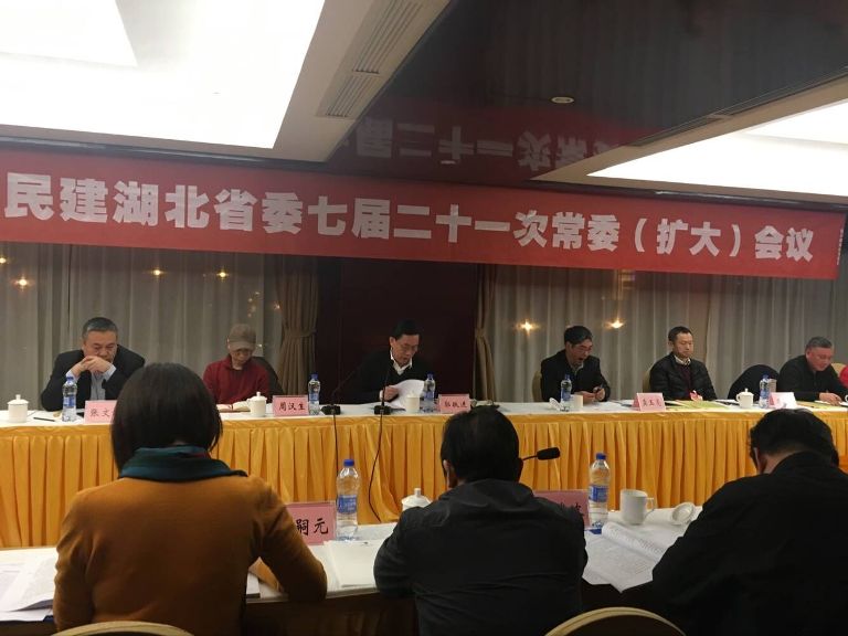 1月15日,民建湖北省委在楚天粤海国际大酒店3楼新闻发布厅召开七届二十一次常委(扩大)会议。省政协副主席、民建省委主委郭跃进主持会议,民建省委副主委龚玉亮、周汉生、周歆昕、张文彤、王应华、韩民春、李燕萍、宋君慧出席会议。