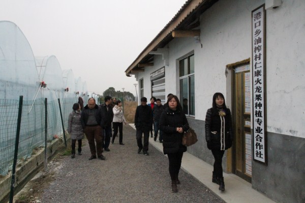 民建湖北省委机关一行实地考察火龙果种植采摘基地。