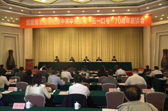 4月19日,民建湖北省委纪念中共中央发布“五一口号”70周年座谈会在汉召开。省政协副主席、民建省委主委郭跃进出席座谈会并讲话。民建省委副主委张文彤、王应华、李燕萍出席。专职副主委宋君慧主持座谈会。