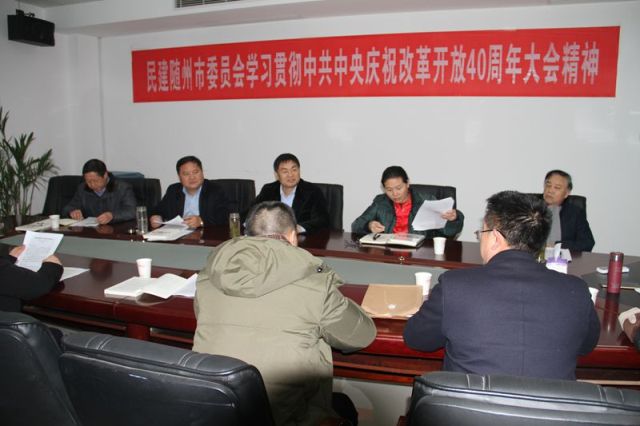 会议首先由民建随州市委秘书长金玉善领学了习近平总书记在庆祝改革开放40周年大会上的重要讲话精神;民建随州市委专职副主委肖英传达了民建湖北省委市级组织学习座谈会精神;民建会员陈渊、严贤涛、詹昌辉等发表了学习心得及感言,他们结合个人和企业发展,讲述了他们参与改革开放、推动改革开放、受益改革开放的历程,表达了对党、对国家的感恩之情。