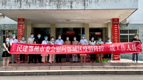 8月20日上午,民建鄂州市委在主委王中英的带领下,走访慰问鄂城区疫情防控一线工作人员,助力抗疫。