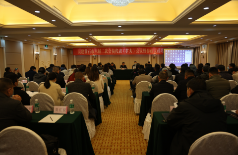 12月30日, 民建黄石市委召开八届二次会员代表(扩大)会议暨参政议政培训班,会议由民建市委副主委刘飞主持,来自黄石市各基层组织90余名会员参加了本次会议。