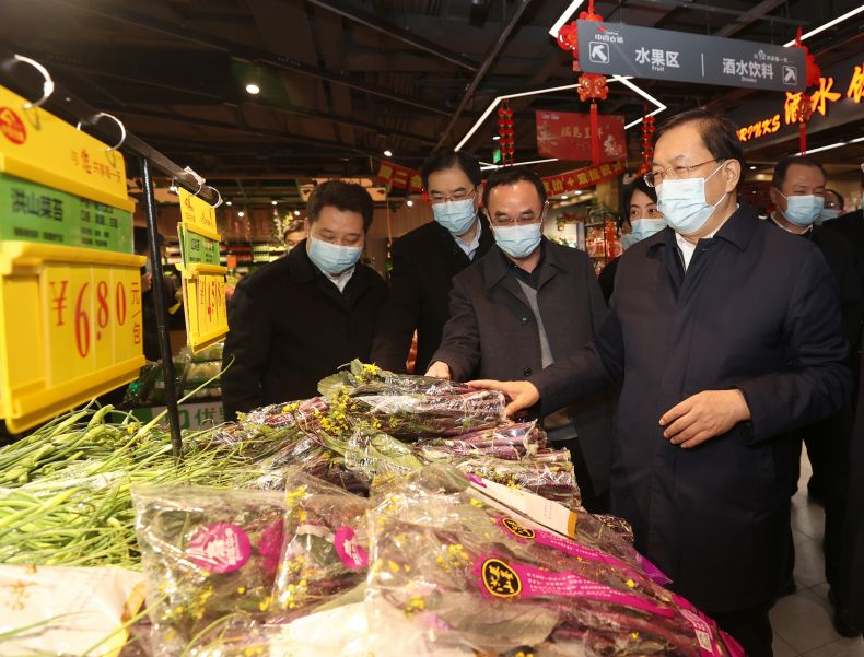 在中百仓储家盛时代店,生鲜、食品和百货等各类商品琳琅满目。王忠林详细了解农副产品销售情况,要求相关单位加快推动农业规模化、标准化生产,加强农商对接,将更多优质湖北农产品送上消费者餐桌。他充分肯定武商、中百等商贸流通企业为我省疫情防控和疫后重振所作贡献,要求相关部门进一步加强支持服务,帮助企业解决实际困难,加强宣传推介,擦亮湖北商贸品牌。