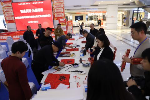 为深入学习贯彻中共二十届四中全会精神,弘扬民建优良传统,进一步增强组织凝聚力,2025年11月2日下午,民建荆州市委直属综合总支在居然之家荆州分公司成功举办“循迹民建·炁墨同缘”书法笔会活动。本次活动以“强会史、健体魄、留丹青”为主题,创新融合会史学习、健康锻炼与书画创作三大环节,形式新颖,内容充实。民建荆州市委会主委杨红娟、市委会原主委魏昌松、专职副主委兼秘书长张秀峰、江陵县政协副主席李脉,民建荆州市委会直属综合总支班子成员、骨干会员、荆州书画界专家及企业嘉宾等50余人齐聚一堂,共同绘就团结奋进的“同心圆”。