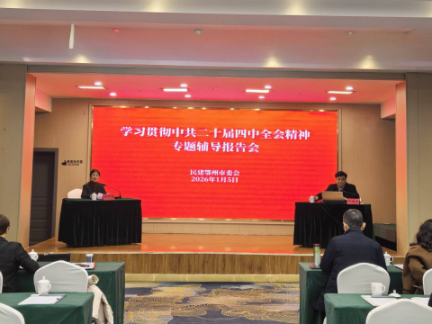 2026年1月5日,民建鄂州市委会召开学习贯彻中共二十届四中全会精神专题辅导报告会,邀请市委宣讲团成员、市委党校常务副校长、市行政学院常务副院长邓福兵作专题宣讲。市委会主委王中英主持会议。