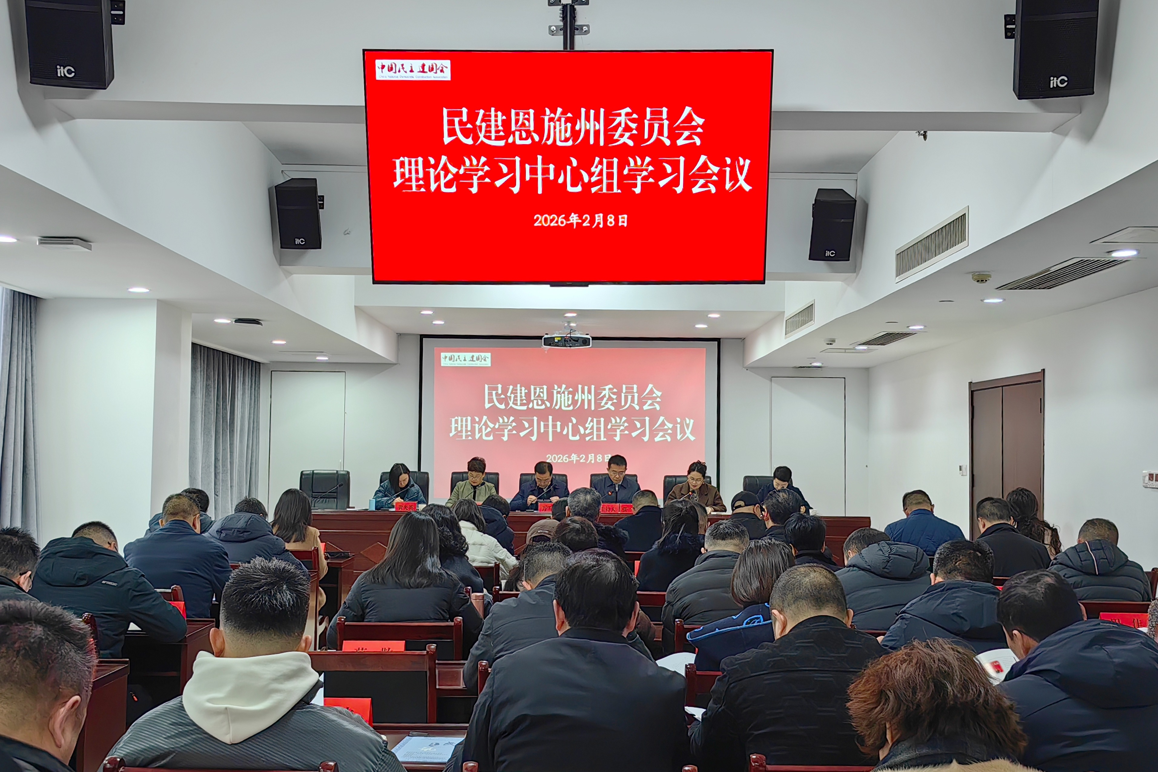2026年2月8日,民建恩施州委会召开2026年第二次理论学习中心组学习(扩大)会议,深入学习贯彻中共二十大和二十届历次全会精神,聚焦“十五五”开局之年目标任务,进一步夯实思想政治基础、凝聚奋进共识。民建湖北省委常委、民建恩施州委会主委、州文旅局局长张伟主持学习会议,全体州委会委员、部委负责人、各支部主委和副主委、机关干部及部分骨干会员代表共60余人参加学习。