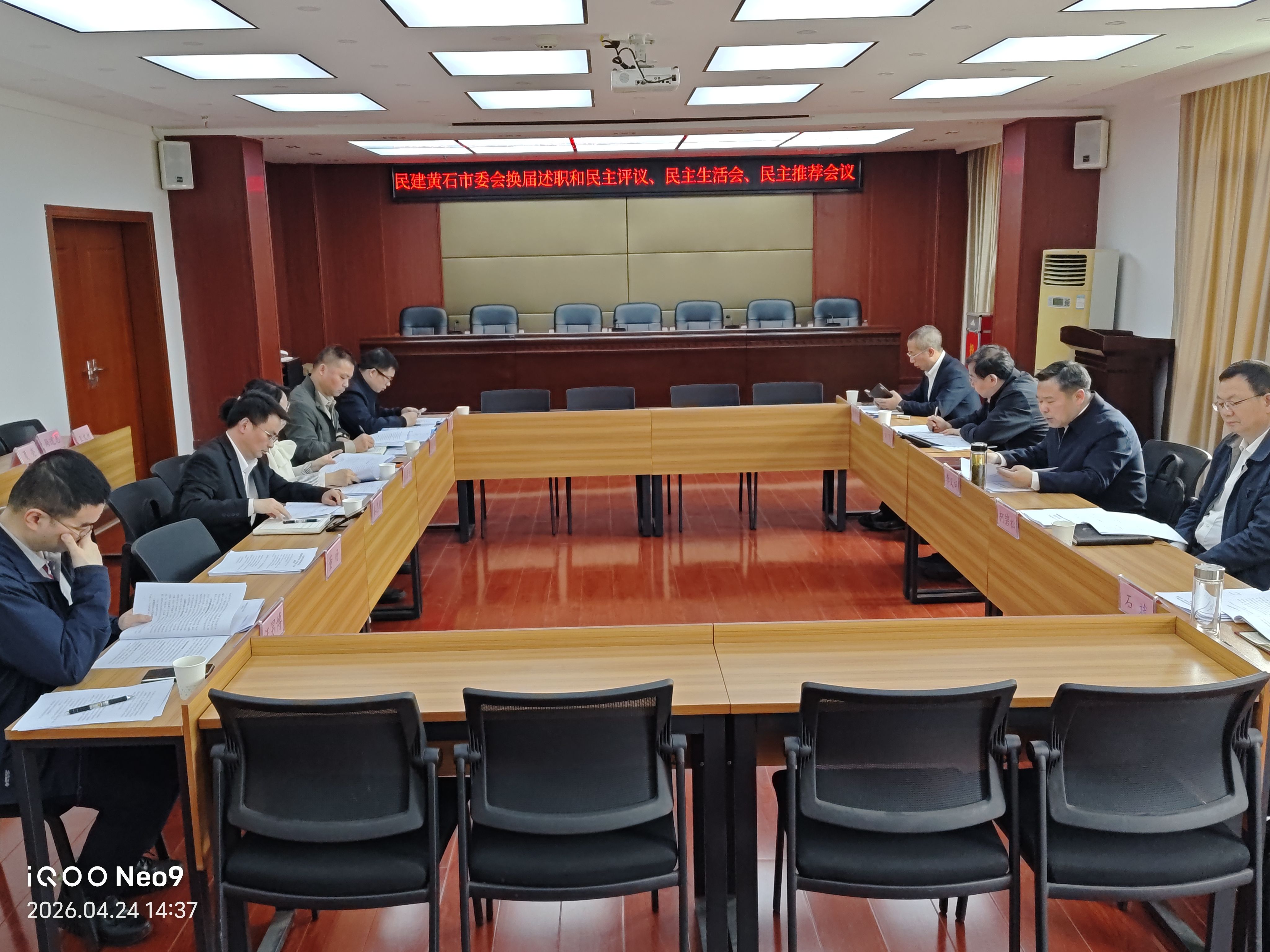 4月24日,民建黄石市委召开领导班子换届述职和民主评议、民主生活会、民主推荐会议。黄石市政协副主席、民建市委主委李义词,市委统战部副部长柯碧松和市委统战部对口联系工作组有关同志到会指导。民建市委委员、各基层组织主委、内部监督委员会委员、任副县级以上领导职务的民建会员参加会议。