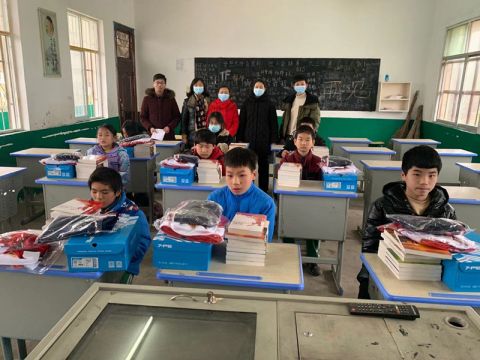 一行4人来到学校给思源班的学生捐赠了一批图书、鞋子和衣服,为寒冷冬天大山里的贫困学生送去一丝温暖。